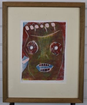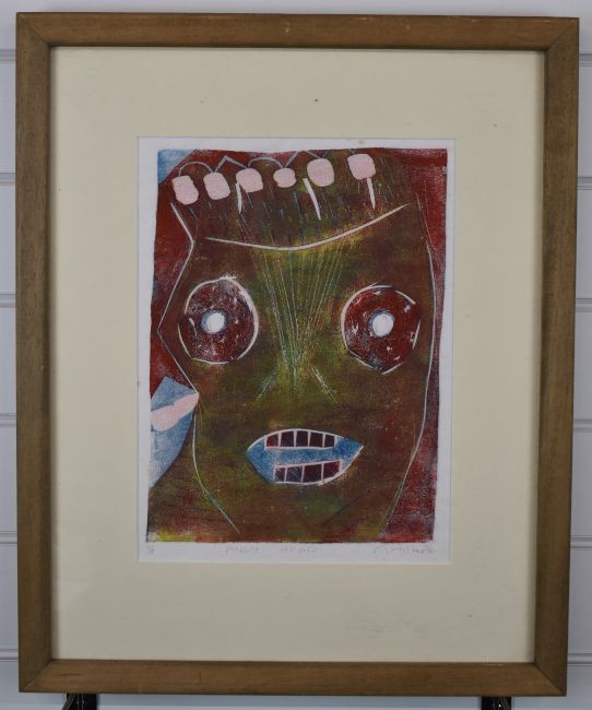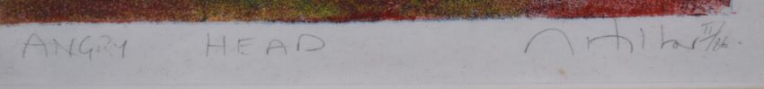 Matthew Hilton (b1948) signed limited edition (6/66) lino cut or similar study 'Angry Head, 34 x 25cm