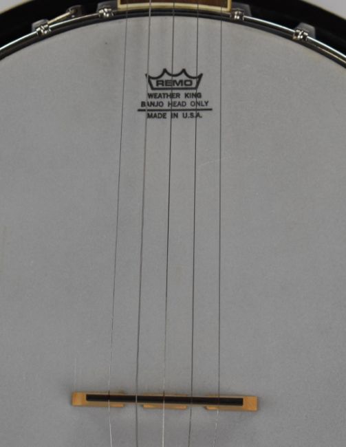 Encore five string banjo with leather shoulder strap