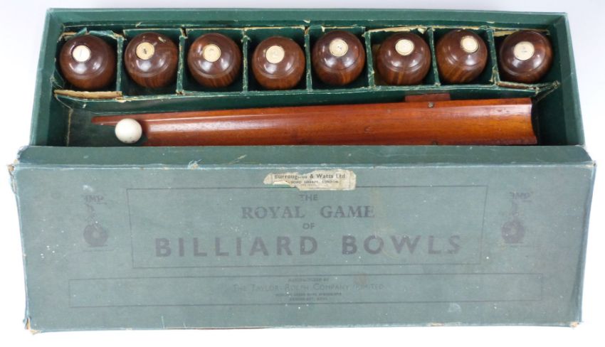 The Taylor-Ralph Company Limited The Royal Game of Billiard Bowls lignum vitae carpet bowls set, in original box.