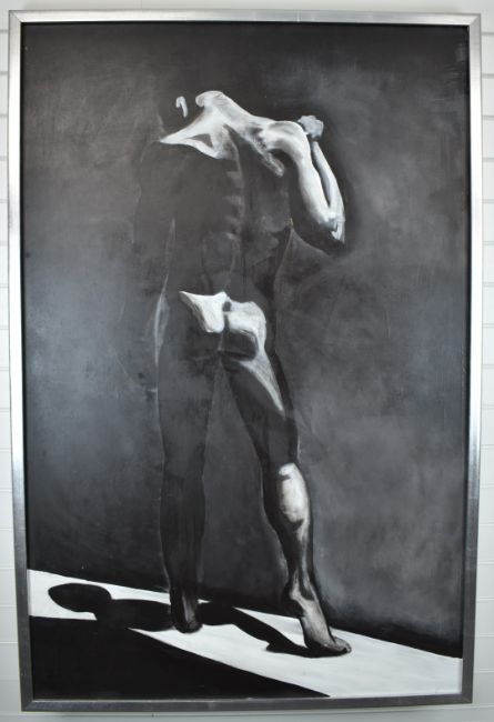 Large oil or acrylic on canvas male nude, 157 x 103cm