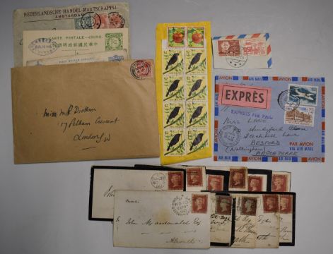 Two box files of GB and world stamps, first day covers and covers, including eleven 1d reds on covers