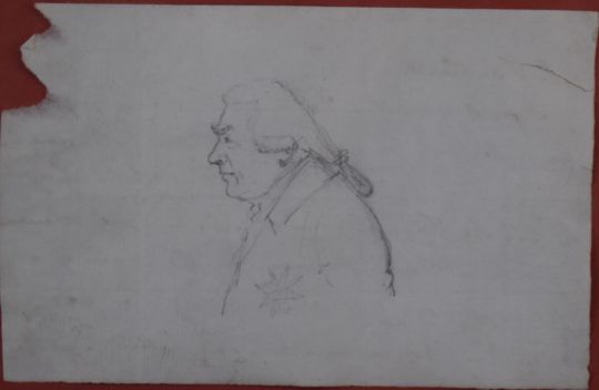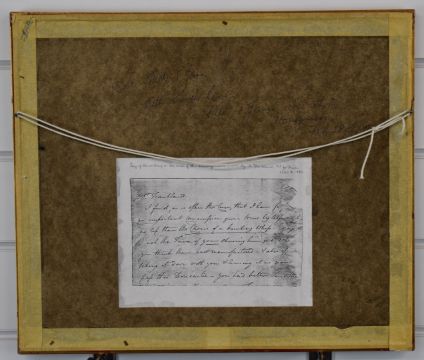 Georgian pencil portrait of a man by S Frankland, MP for Thirsk c1790-1820, with copy of the script to the reverse of the drawing attached to rear, 11.5 x 18cm, in gilt frame