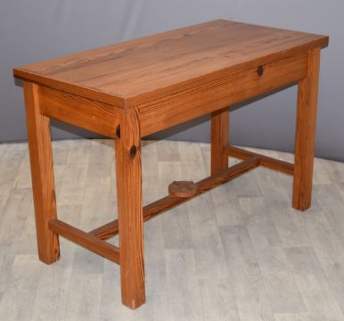 Victorian pine altar table, ex Rodborough Tabernacle and Painswick United Reform Church, W122 x D61 x H81cm