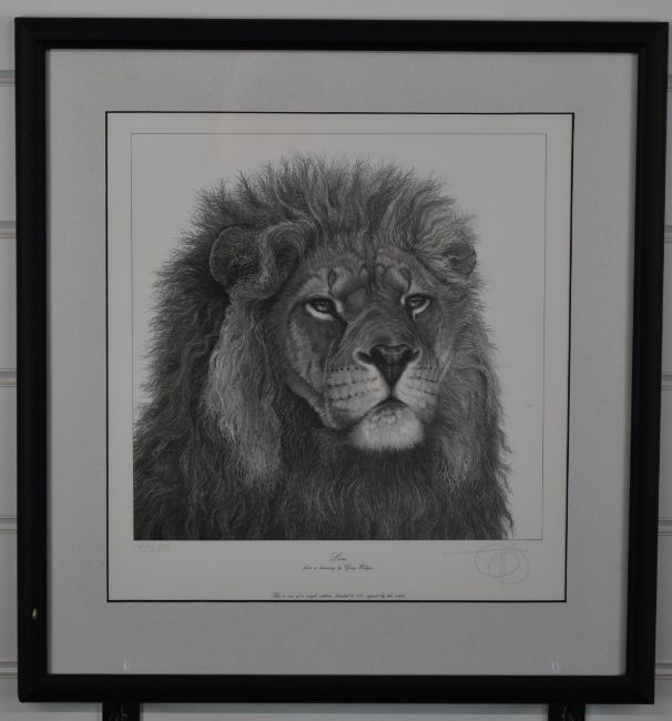 Gary Hodges (b1954) signed limited edition prints Lion (752/850) and Mother's Love (418/850) elephants, larger 43 x 29.5cm