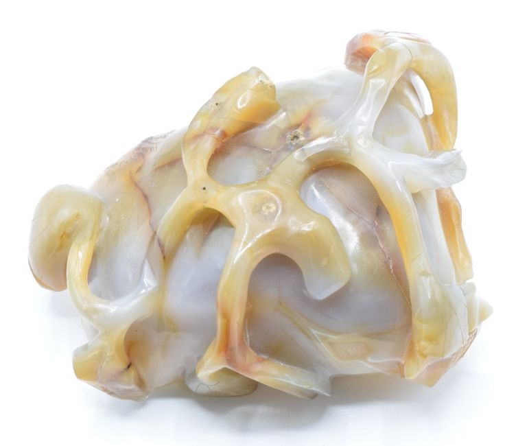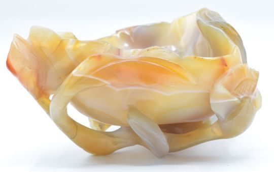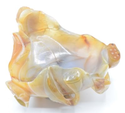 Chinese 19thC agate brush washer carved in the form of a lotus leaf, 10 x 8cm
