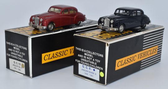 Two Gems & Cobwebs 1:43 scale diecast model cars Jaguar MK. IX 1958-1961 GC6 and Jaguar MK. X 1961-1966 GC10, both in original boxes.