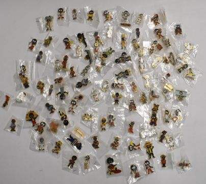 Collection of Robertson's Golly collector's badges and a reference book
