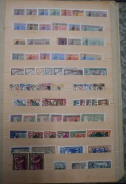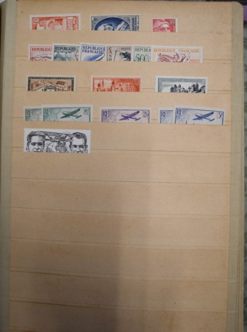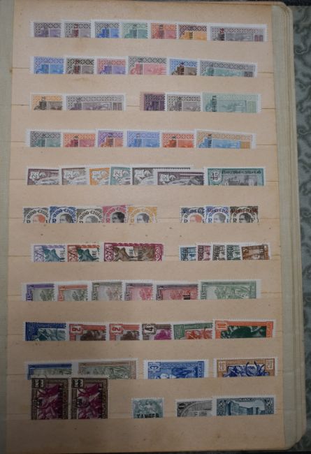 Utile spring back stamp album containing a mint and used collection of stamps from France and the French Colonies from early issues to 1950's including blocks, airs etc on dealer's stock pages.