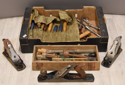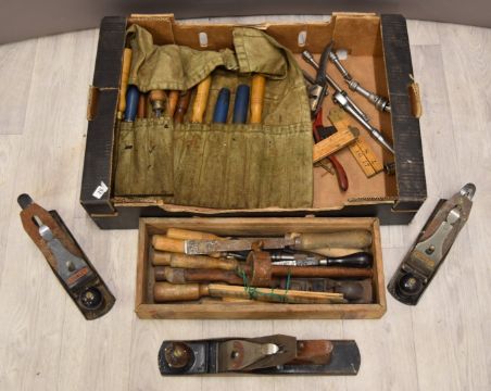 Tools to include Whitmore No.4 plane, chisels, brace etc