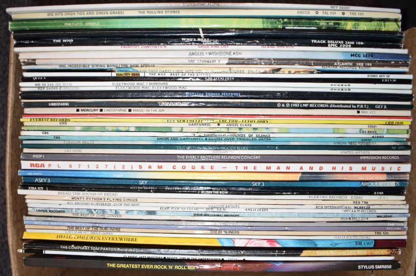 Approximately 50 albums including Pink Floyd, Queen, The Who, Fleetwood Mac, The Rolling Stones, Barclay James Harvest, Elton John, Lindisfarne, Simon & Garfunkel etc, generally VG/EX
