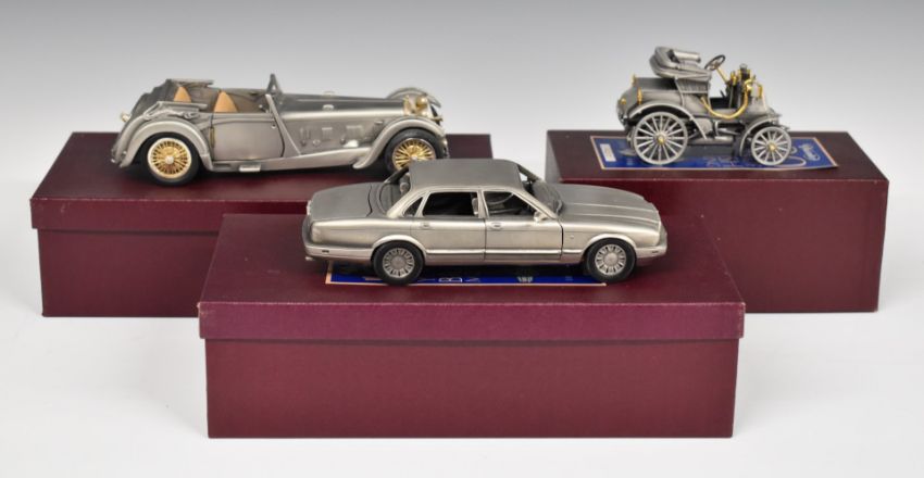 Three Daimler 100 Years of British Motoring white metal models, all limited edition of 220, in original boxes.