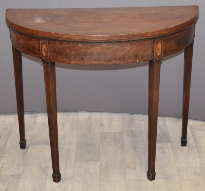 Georgian mahogany fold over card table, W91 x D45 x H74cm