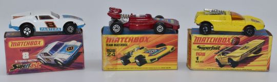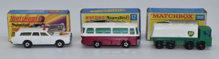 Fifteen Matchbox diecast model vehicles, 12, 24, 63 x2 and 72, Superfast 1, 8, 10, 12, 20, 32, 55 and 62 x2 and Rola-Matics 28, all in original boxes.