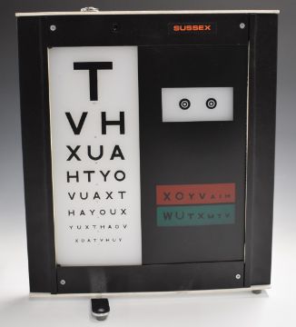 Small optician's illuminated alphabet sign with leads, 32 x 33cm