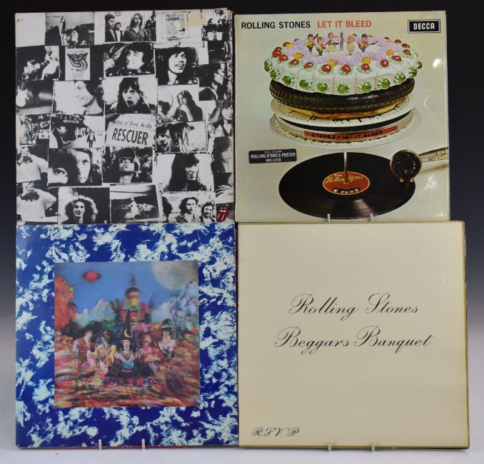 The Rolling Stones - 4 albums including Their Satanic Majesties Request (TXL103) record, cover and red inner appear at least VG, Beggars Banquet (LK4955), Let It Bleed (SKL5025) and Exile on Main Street (COC69100), records and covers generally VG less soft scuffs