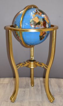 Hardstone pietra dura inlaid gimbal mounted globe with compass, on a metal stand, H86cm