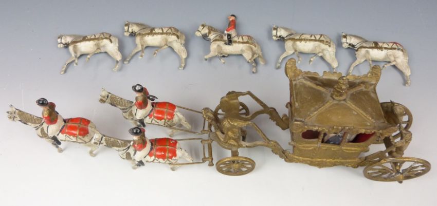 Britains lead model Coronation Coach comprising coach, eight horses and four horse riders.