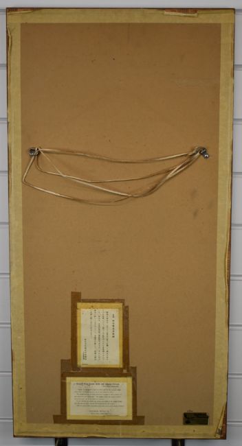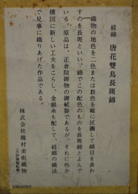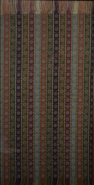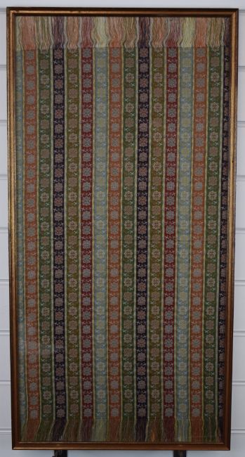 Japanese embroidered brocade shawl, framed and glazed, 80 x 40cm