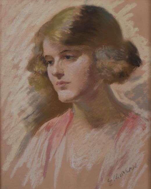 S. Morgan two pastel portraits of ladies, both signed to lower corners, larger 44 x 35cm, in part gilt frame