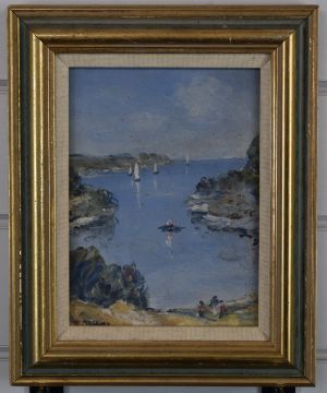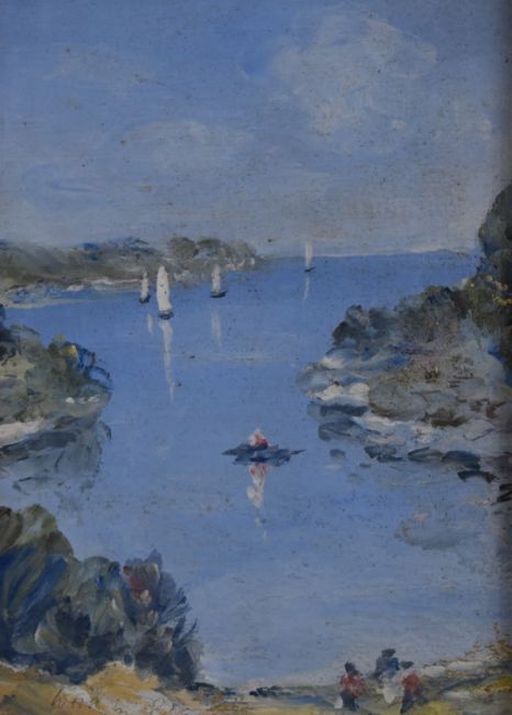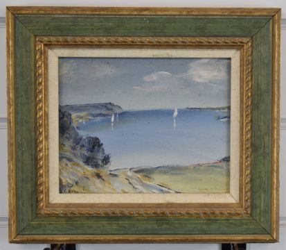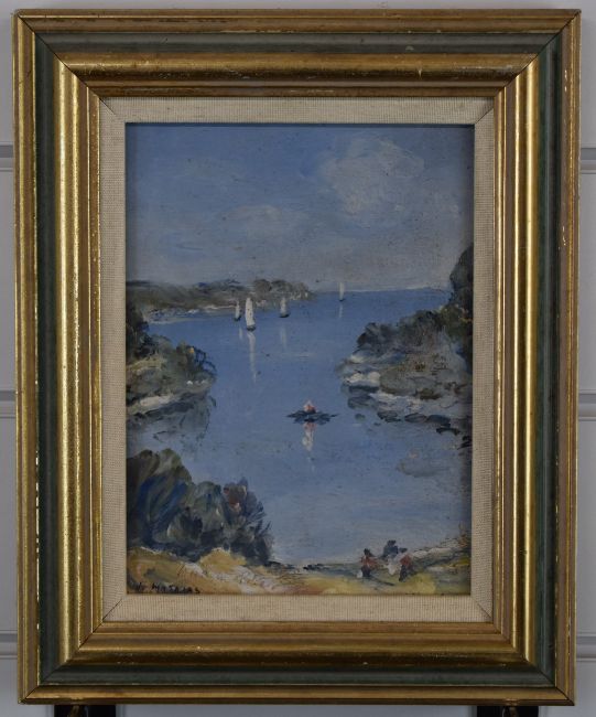 Victor Mathias (1905-1933), pair of impressionist oil on board coastal landscapes, both signed lower left, larger 18.5 x 13.5cm, in part gilt frames