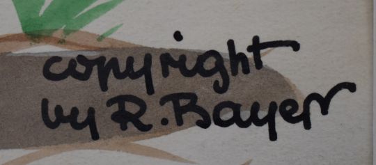 Richard Franz Bayer (1901-1990) framed set of four WW2 political interest cartoons titled 'Porridge', 'Hot Bath 4d', '24 Lines Only' and 'Rollcall', all signed lower right  each approximately, 27 x 18.5cm, framed in one display with wooden frame. Bayer was tutor to David Hockney