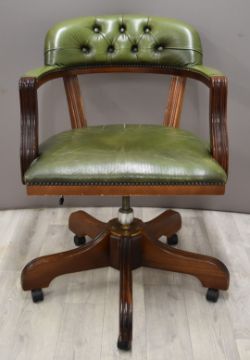 Green leather upholstered captain's, desk or office chair with Chesterfield style buttoned back