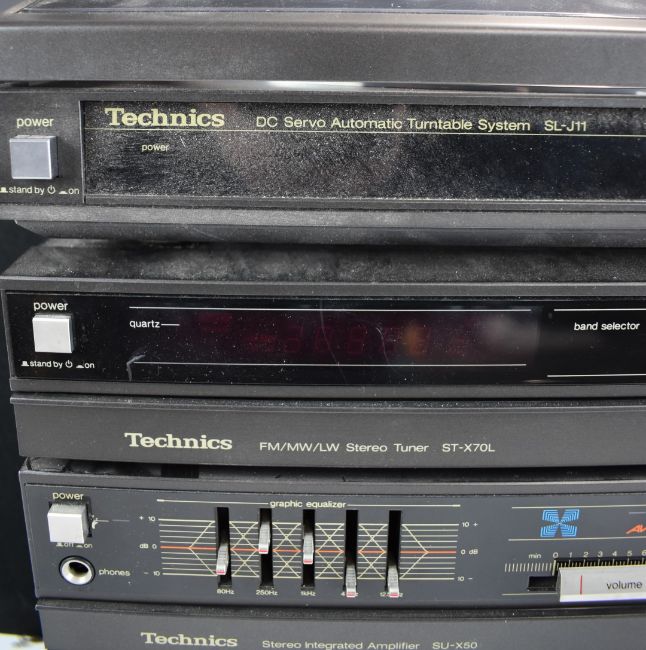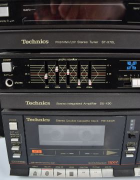 Technics hifi comprising turntable, tuner, amplifier and tape deck with KEF speakers