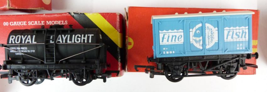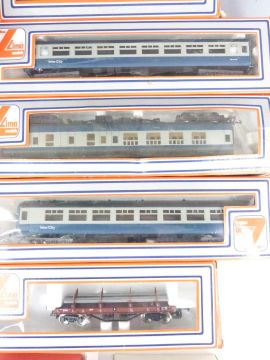Fifteen Hornby and Lima 00 gauge model railway coaches and wagons, all in original boxes.