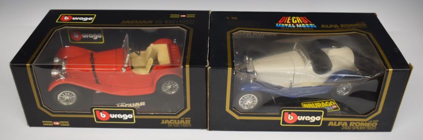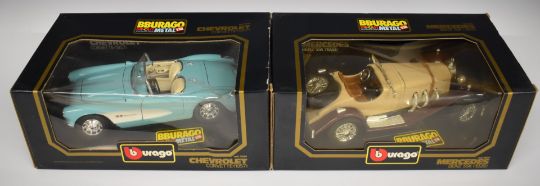 Seven Burago and one Minichamps Paul's Model Art 1:18 scale diecast model vehicles including Red Bull Racing RB2 D Coulthard 2006, all in original display boxes.