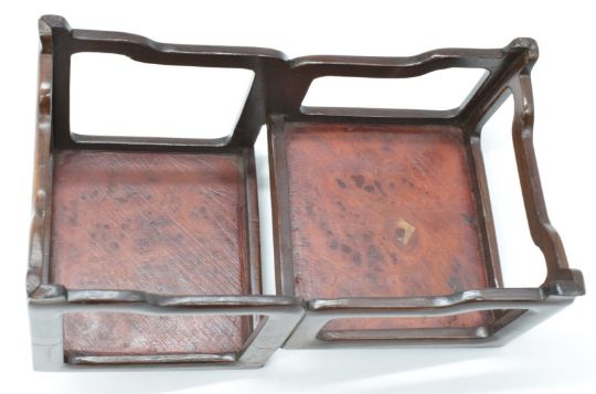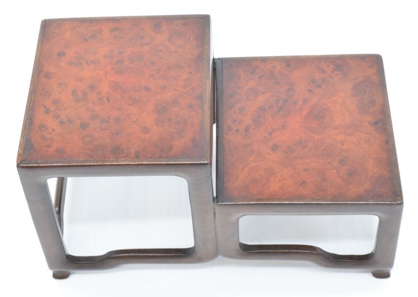 Chinese 19th/ early 20thC burr wood two tier stand, H11 x L20cm