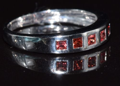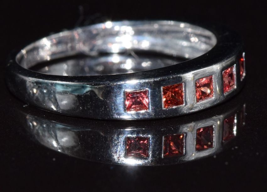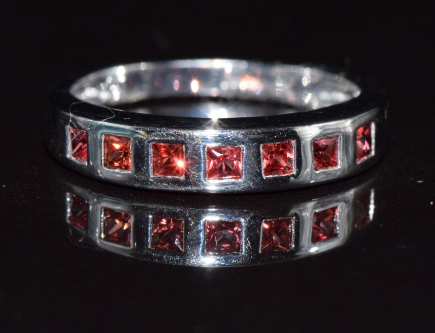 A 9k white gold ring set with orange sapphires, 2.9g, size N