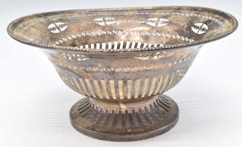 George VI hallmarked silver bon bon dish with pierced decoration, London 1938, maker Josiah Williams & Co, diameter 12cm, weight 103g