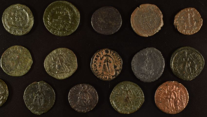 Imperial Roman coinage AD379-395 Theodosius I, 30 bronze coins, diameter of largest 22mm, smallest 10mm