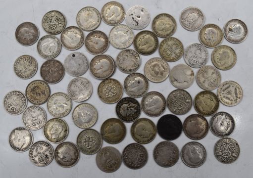 Approximately fifty various silver threepences, Queen Victoria onwards