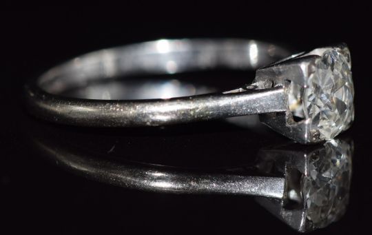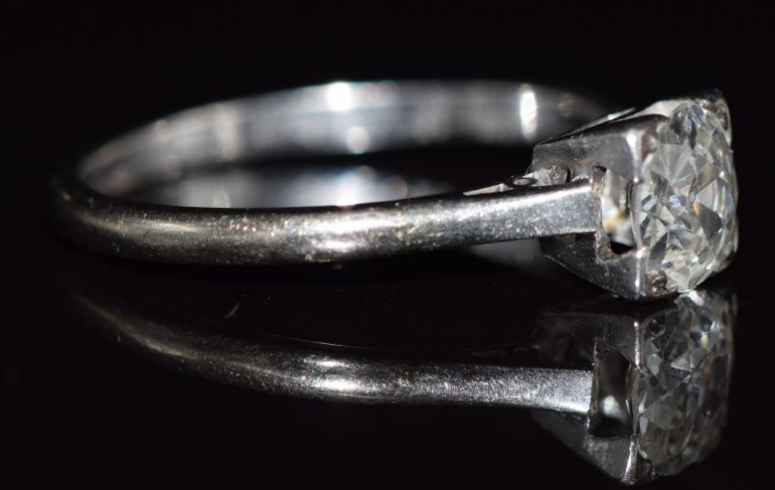 A platinum ring set with an old cut diamond of approximately 0.8ct, 2.7g, size P
