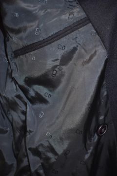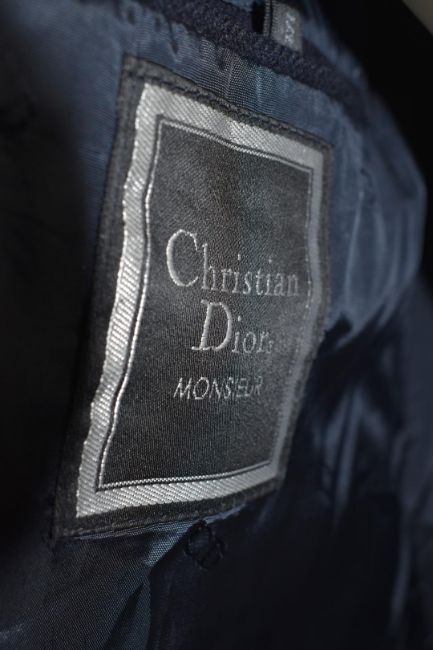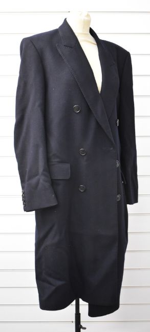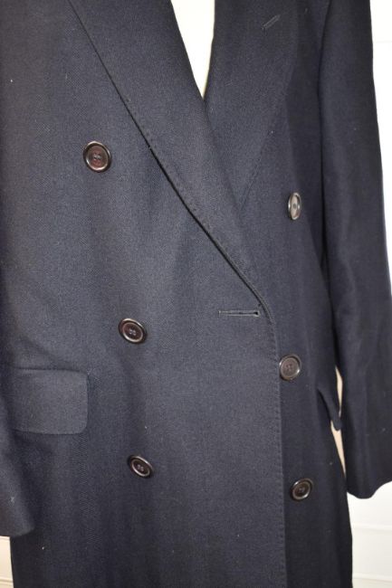 Christian Dior gentleman's double breasted navy blue wool overcoat, approximate size 46 chest.