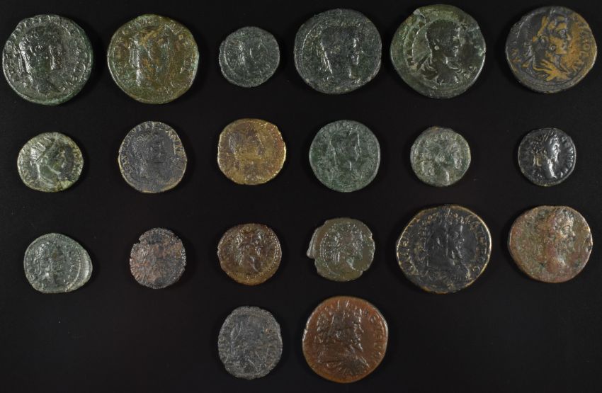 Roman Provincial coinage AD193-235 twenty bronze coins Severus Alexander and Septimus Severus, smallest diameter 16mm, largest 25mm