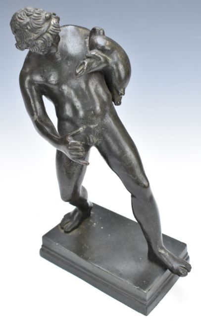Two bronze classical figures one depicting Pan, height of taller 32cm