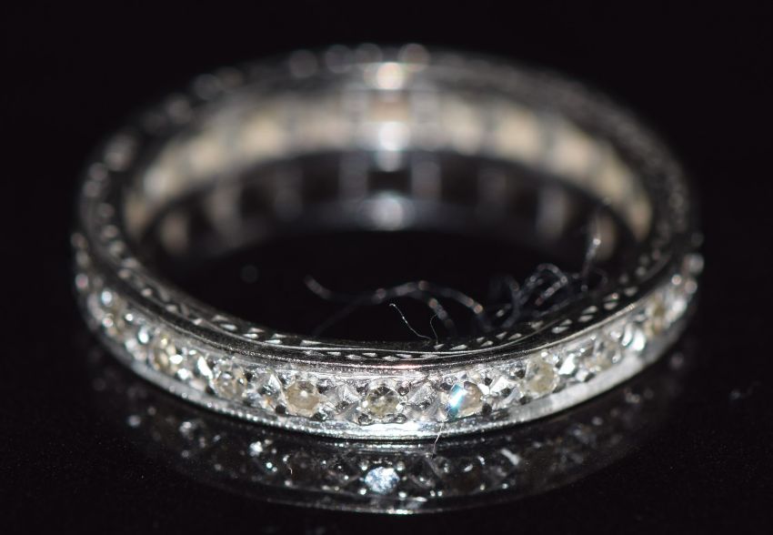 Art Deco style 18ct white gold ring set with diamonds, 3.6g, size P