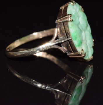 A 9ct gold ring set with carved jade panel, 2.5g, size R