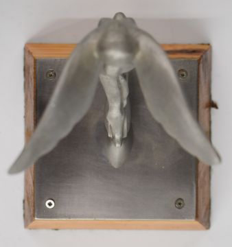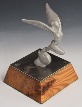 Triumph interest aluminium mascot on wooden base, overall height 18cm