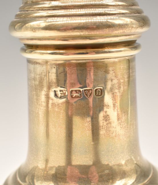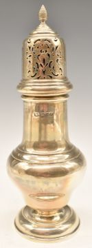 George VI hallmarked silver sugar caster of baluster form, Chester 1938, maker S Blanckensee & Son Ltd, height 23.5cm, weight 222g