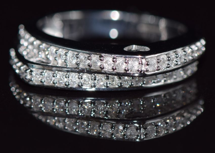 A 9k white gold ring set with diamonds totalling approximately 0.4ct, 5.3g, size N