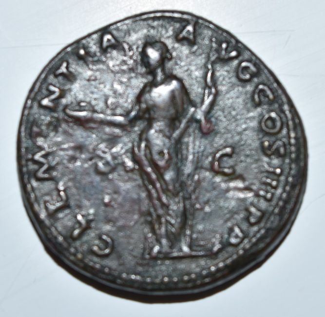 Roman Imperial coinage Adoptive Emperors AD96-138 Hadrian bronze Sestertius, HADRIANUS AUG VSTUS, laureate bust right, rev CLEMENTIA AVG COS III P P S C, Clementis standing left holding patera and sceptre, diameter 31mm, 24.3g