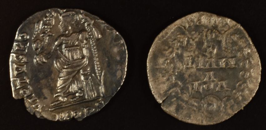 Imperial Roman coinage AD393-423 Hondrius two silver Siliqua coins, one Roma seated the other VOT.V.MVLT in wreath reverses