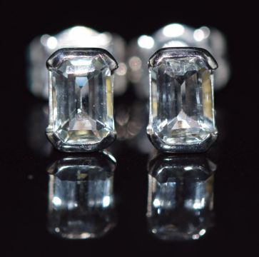 A pair of 18ct gold earrings set with an emerald cut aquamarine to each