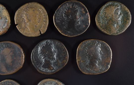 Roman Imperial coinage The Antonines AD138-193 Marcus Aurelius eight various bronze Sestertius coins, diameter 28-30mm