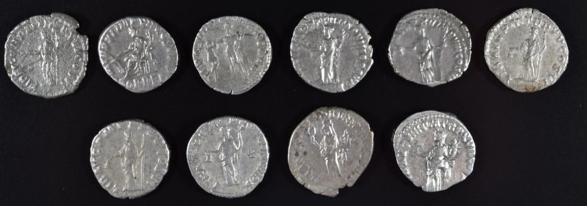 Roman Imperial coinage The Antonines AD138-193 Commodus ten silver Denarius, various reverses, diameter 17-18mm