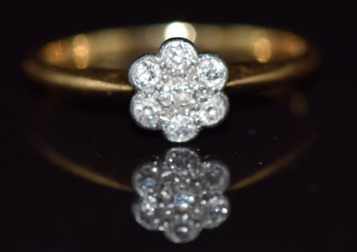 An 18ct gold ring set with diamonds in a flower cluster, 2.3g, size O