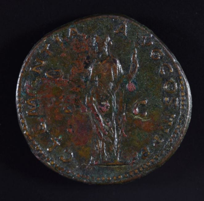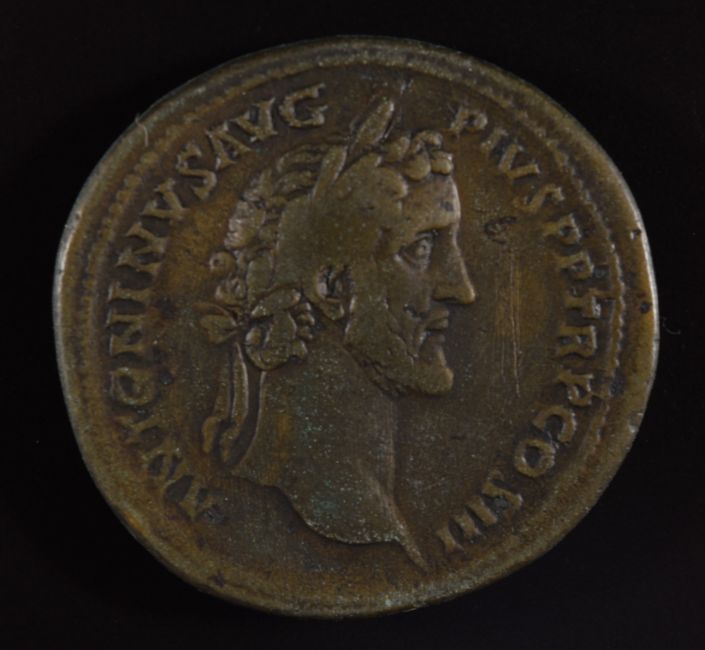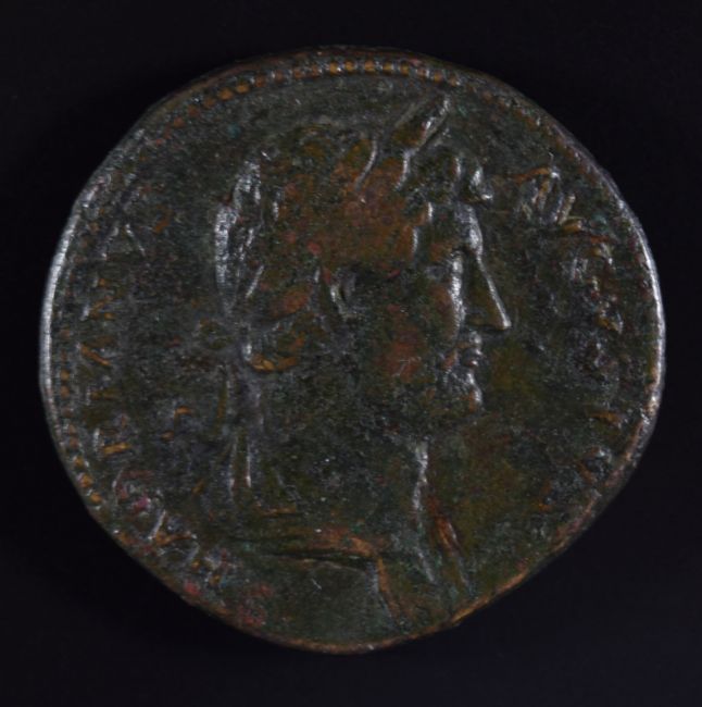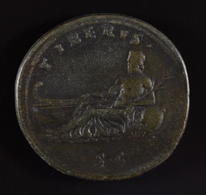 Roman Imperial coinage The Antonines AD138-193 Antoninus Pius bronze Sestertius, TIBERIUS S C, the Tiber reclining left, resting right hand on boat and holding reed in left, diameter 34mm, 25.9g